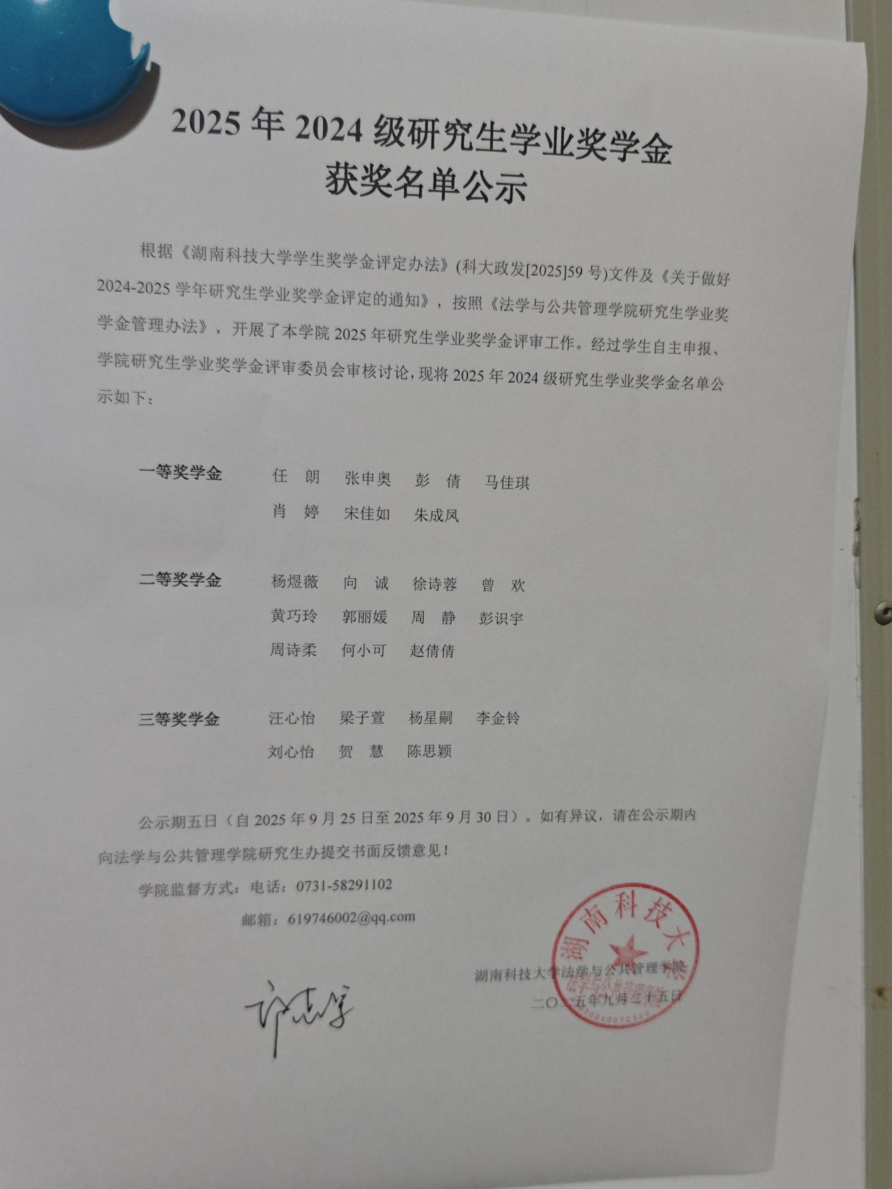 2025年2024级研究生学业奖学金获奖名单公示