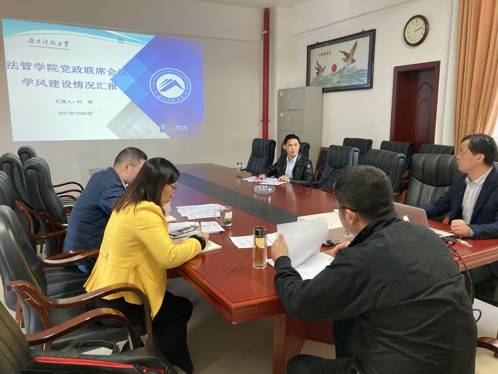 学风建设是高校永恒的话题,也是办学的灵魂所在。2021年即将过去,在新学年即将到来之际,为了总结近年学院学风建设情况,查问题、找差距、定目标和寻对策,法学院与公共管理学院在12月4日、14日和21日分别召开了以学风建设为主题的学院党政联席会议、全体教职工大会和全体学生干部大会。系列会议均由学院党委副书记叶军主讲。