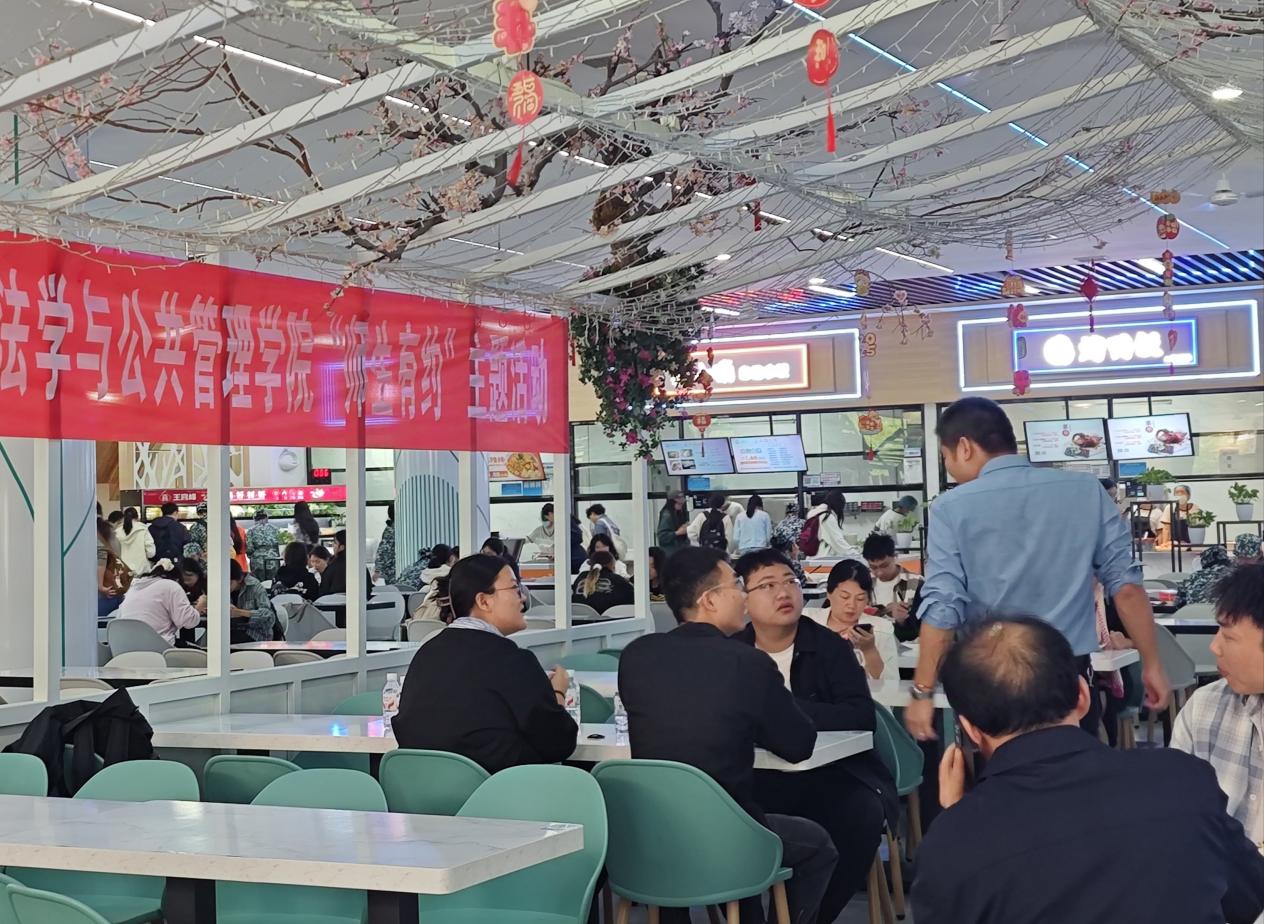 为促进研究生新生与学院教师之间的深入互动,帮助新生更快融入学术生活,2025年9月23日中午,太阳集团城网址83138“师生有约”主题活动在八珍楼一楼餐厅温馨举行。学院党委书记郑海祥、副院长宋智敏、副书记范军豪、辅导员郭志军等领导与多位教师代表出席,与2025级研究生新生共进午餐,畅谈学术与成长。