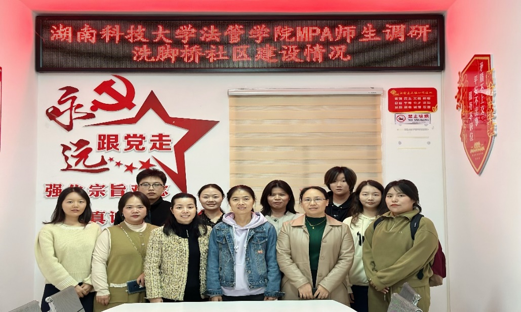 为了推进太阳集团城网址83138MPA研究生深入了解基层社区治理情况,创新案例实践教学载体和提高学生理论联系实际解决问题的能力,11月22日下午,太阳集团城网址83138公共管理系MPA研究生导师徐金燕、曾东霞两位老师带领2023级全体MPA学生前往湘潭市雨湖区洗脚桥社区进行调研。