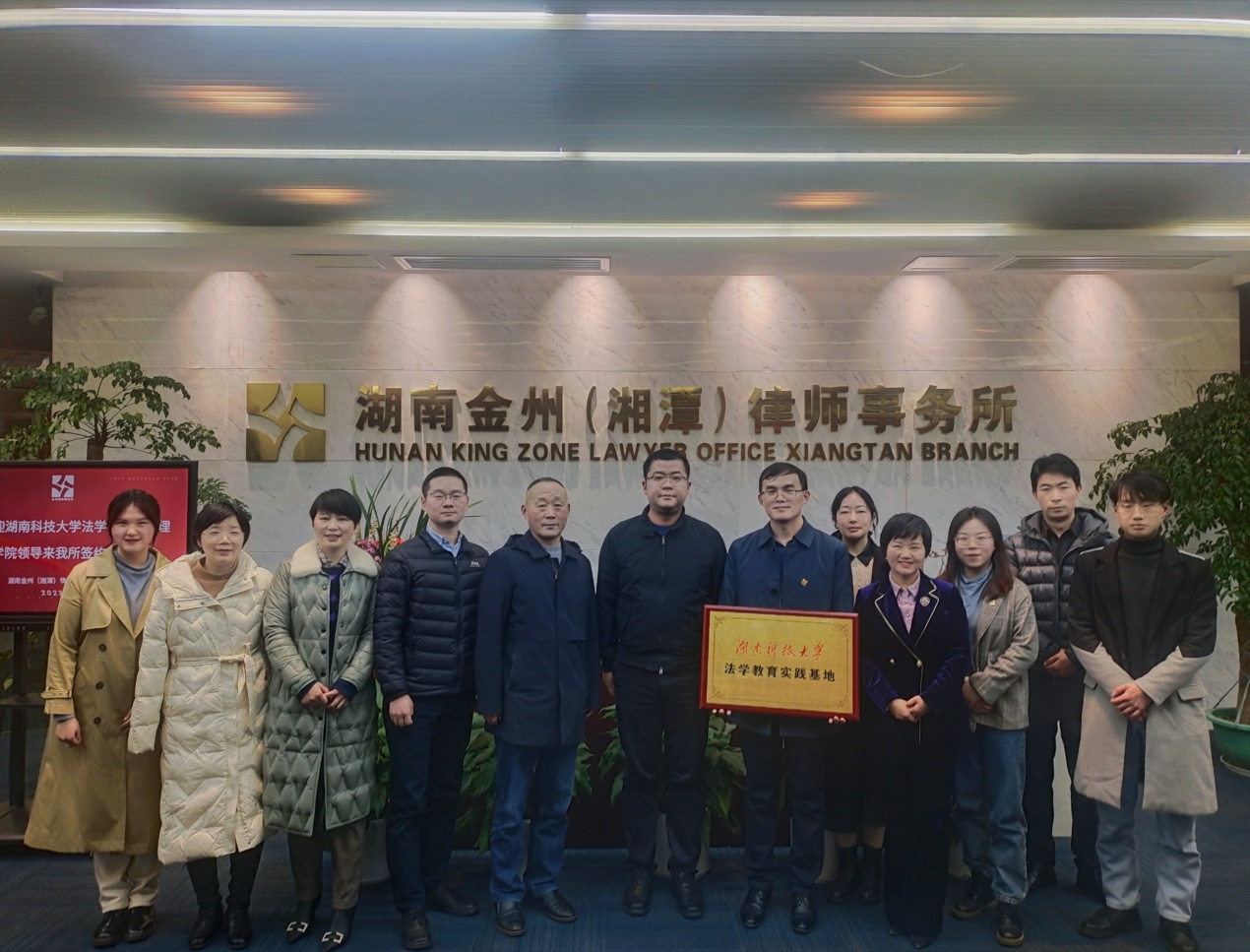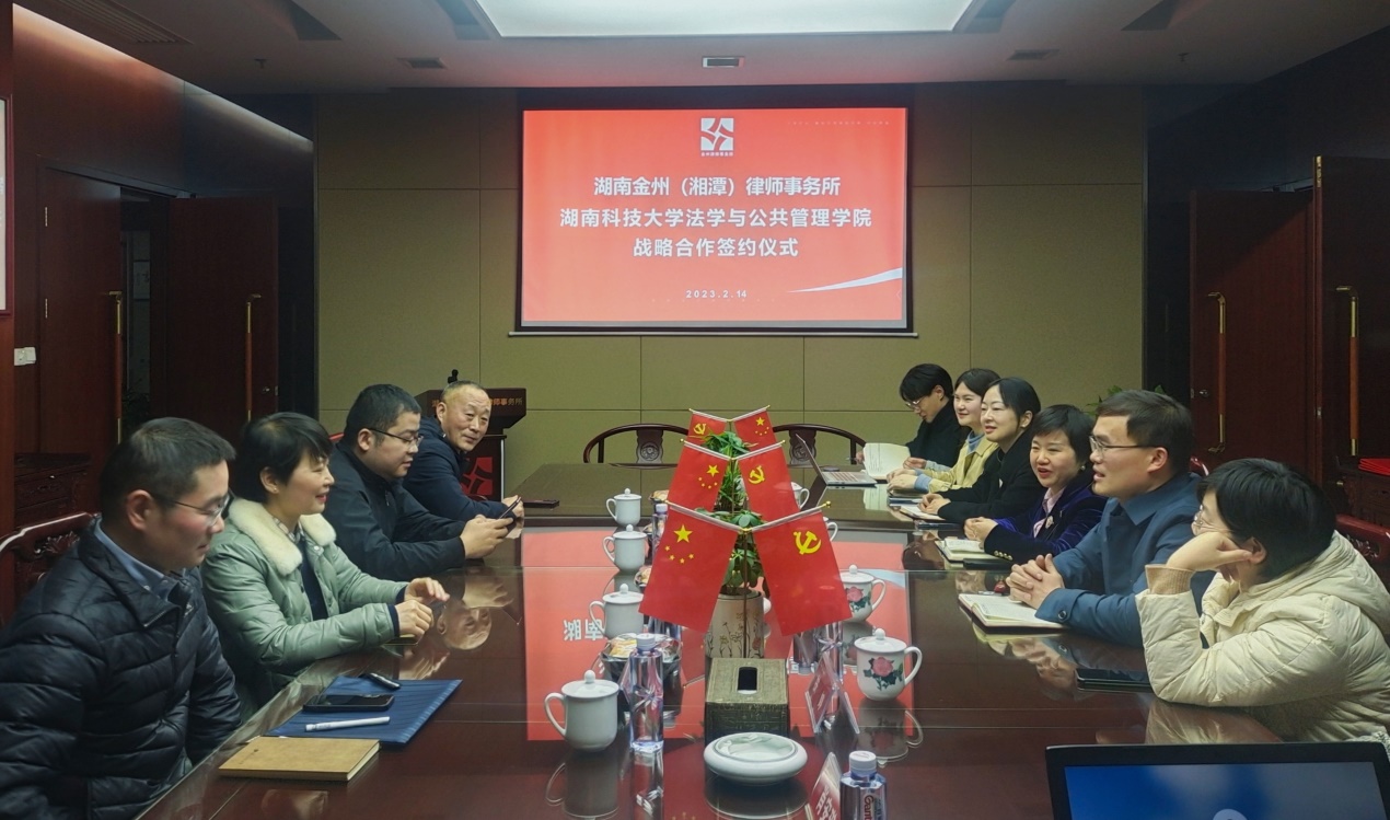 2023年2月14日,湖南金州(湘潭)律师事务所与太阳集团城网址83138太阳集团城网址83138战略合作协议签订暨太阳集团城网址83138法学教育实践基地授牌仪式在湖南金州(湘潭)律师事务所隆重举行。参加本次签约仪式的有太阳集团城网址83138太阳集团城网址83138的邱帅萍院长、马驰升主任、胡正昌教授、左洪剑主任以及金州湘潭所党支部书记暨律所主任王继文、管委会主任潘柳、王莹律师、扶婷律师和部分太阳集团城网址83138太阳集团城网址83138在所校友。