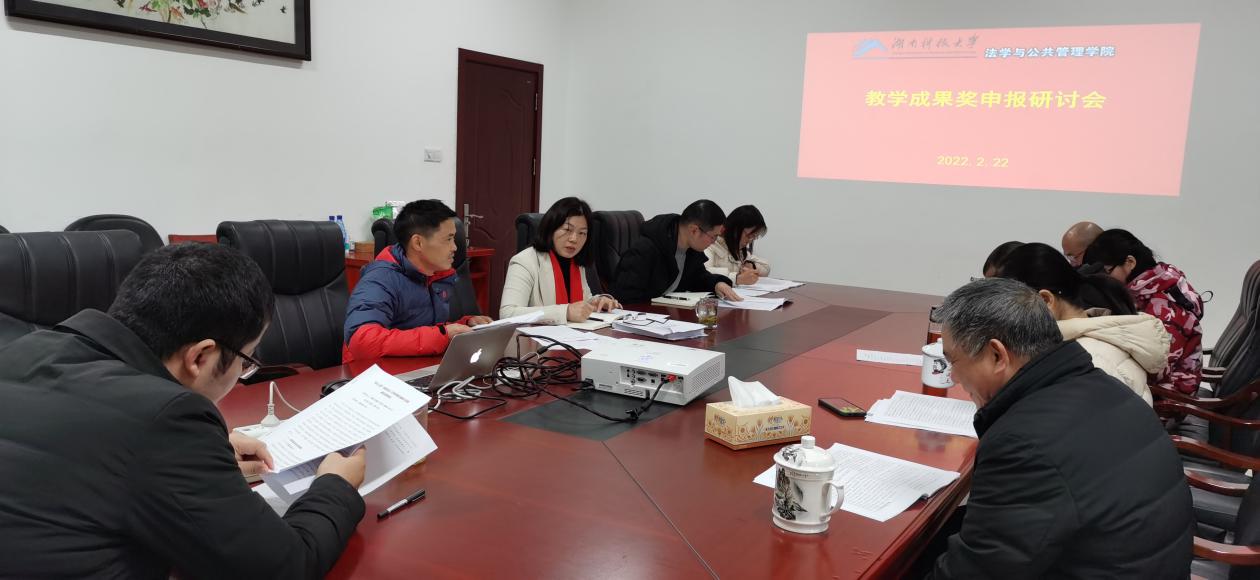 为进一步完善申报材料,2月22日学院在立言楼A427召开教学成果奖申报研讨会。会议由教学副院长王明主持,法律系主任吴四江副教授和全体团队成员参加,与会人员对申报材料进行了充分研讨,并明确了进一步改进方向。
