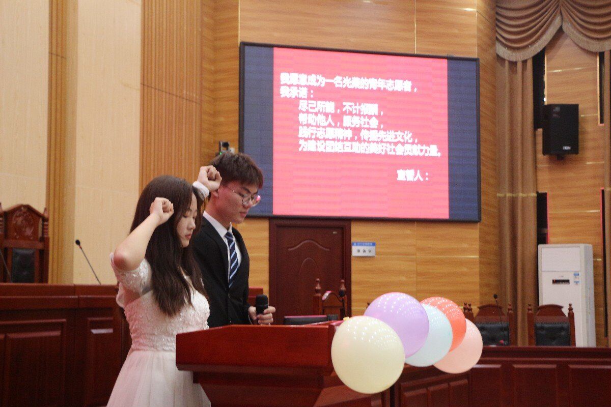 会上还举行了团旗交接仪式,交接完成后,在场志愿者进行集体宣誓。“尽己所能,不计报酬,帮助他人,服务社会”,这不仅仅是一句口号,更是日后每一位志愿者将用自己的行动践行与捍卫的铮铮誓言。优秀志愿者代表许珺仪发言,她认为作为一名志愿者,真诚和务实是真理;志愿活动不仅助人亦是益己,在帮助他人的同时时亦能提高自身素质。在最后的游戏、节目环节,同学们积极参与,现场笑声不断,每个人都在游戏和节目中放松了身心,洗去了一天的疲惫。在这欢声笑语中,会议渐渐落下了帷幕……