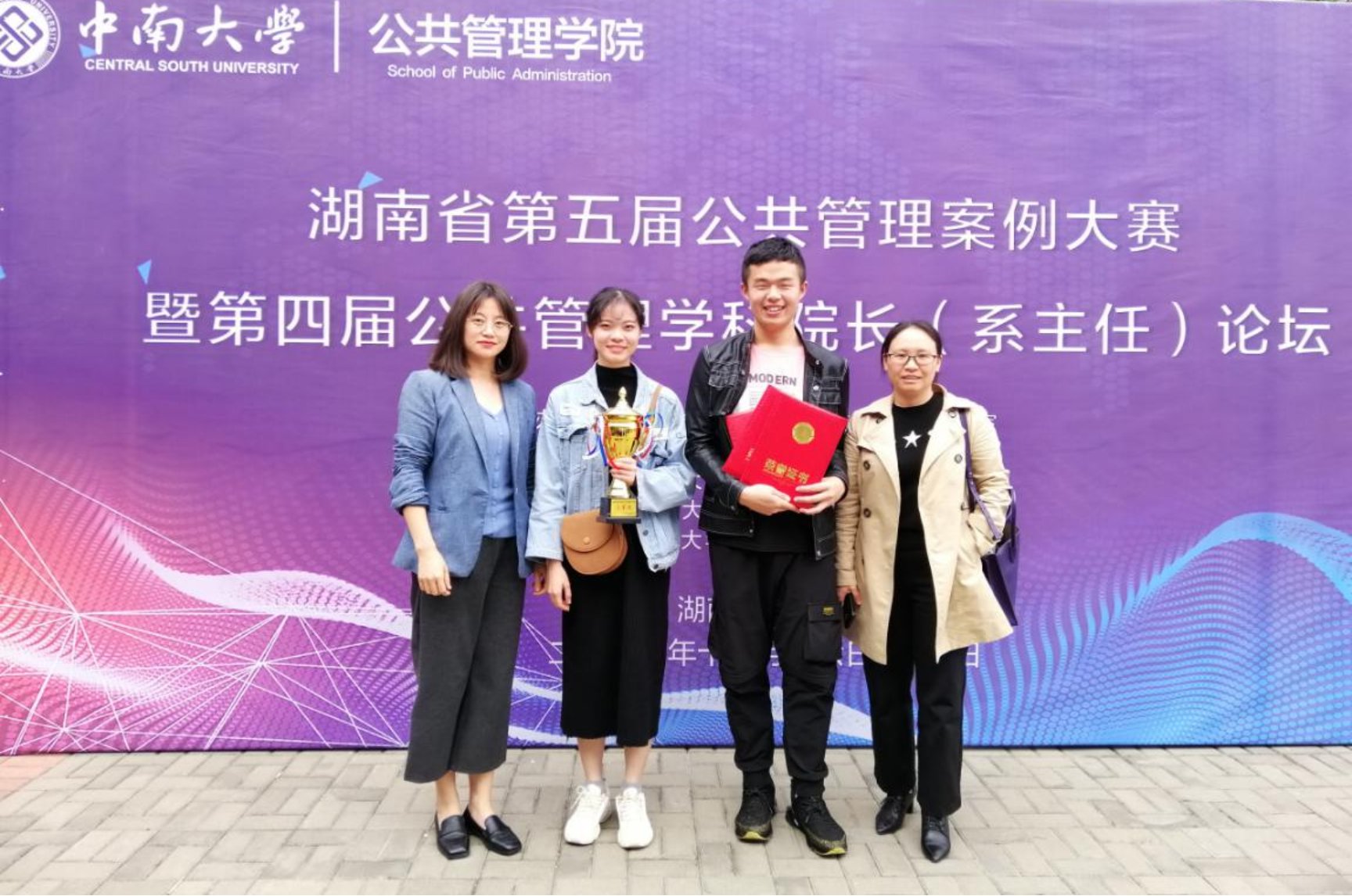 为推动公共管理教学改革和学科发展,提高公共管理人才培养质量。 2019年11月16日至17日,湖南省第五届公共管理案例大赛暨第四届公共管理学科院长(系主任)论坛在中南大学新校区毓秀楼举行。本次论坛及大赛由湖南省人民政府学位委员会办公室主办,中南大学研究生院和中南大学公共管理学院共同承办,中南大学地方治理研究院和中南大学社会稳定风险研究评估中心协办。太阳集团城网址83138王慧慧、曾东霞老师应邀参加,论坛主要就新时代公共管理学科建设、人才培养、机遇挑战和发展前景等重要问题进行了讨论。案例大赛有来自省内高校的28支本科生队伍、24支研究生队伍报名参赛。太阳集团城网址83138也积极组织学生参赛,共有3支本科生队伍提交了文本案例,其中曾东霞老师指导的由刘怀瑾、温颖、徐抒姝、王晓珍四位同学组成的“by talent队”获得三等奖,其余两队获优秀奖。