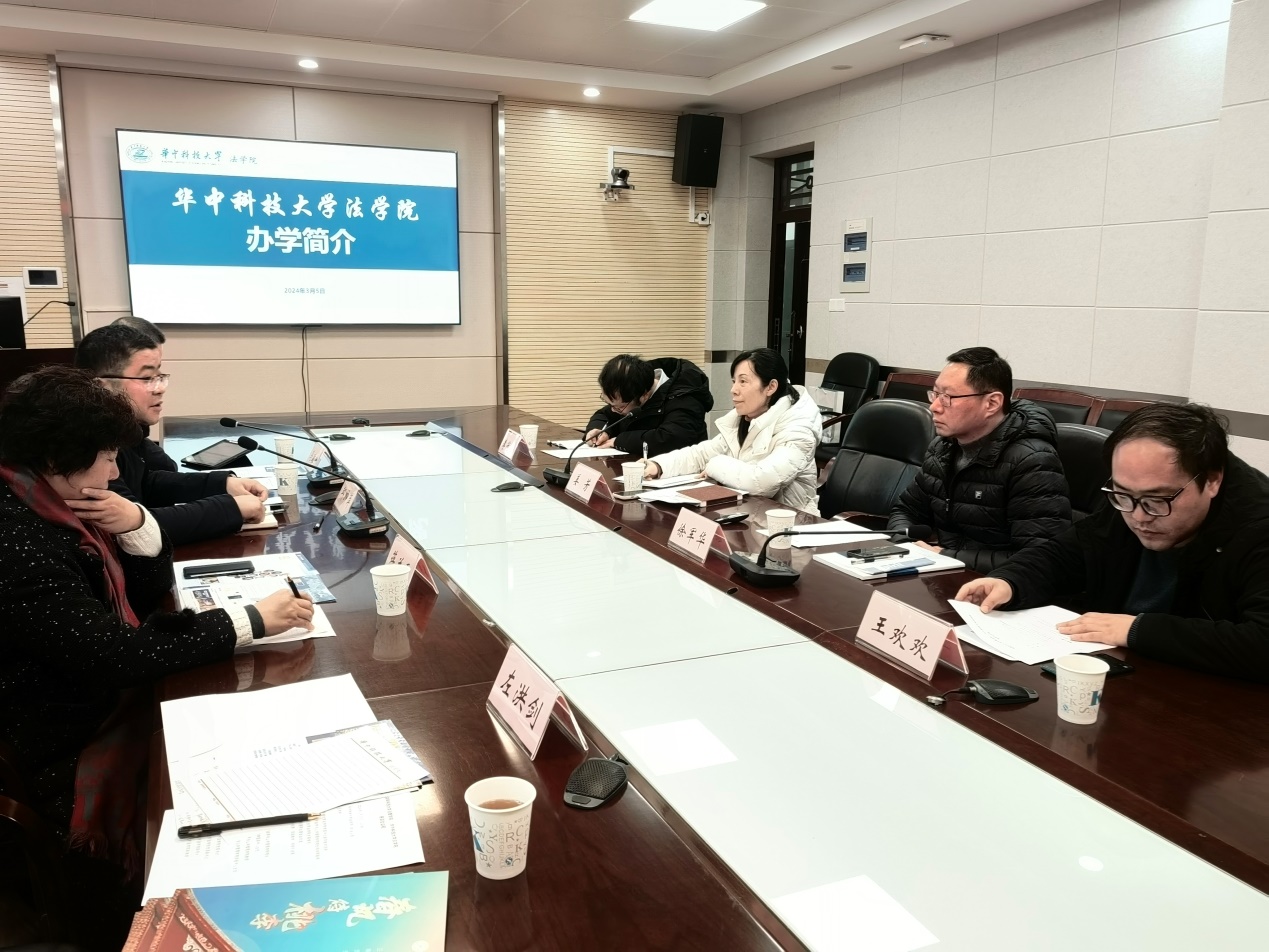 3月5日下午,邱帅萍院长一行考察了华中科技大学法学院,受到华中科技大学大学法学院姜芳书记、徐军华副院长、李冠煜教授、王欢欢副书记等热情接待,姜芳书记发表了欢迎致辞,徐军华副院长简要介绍了华中科技大学法学院的发展历史、法学学科发展及人才培养情况,他表示,希望通过本次座谈进一步加强与太阳集团城网址83138太阳集团城网址83138的交流合作。