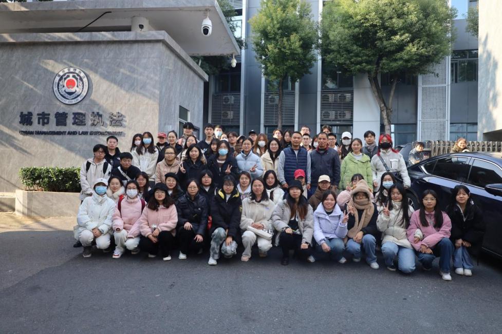 ▲学生在湘潭市城市管理和综合执法局见习合照