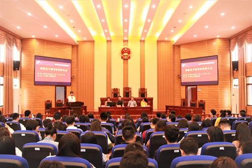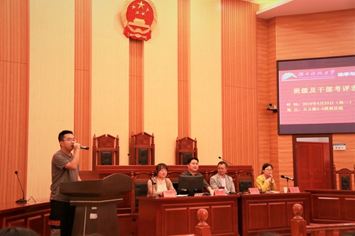 2019年4月23日下午四点三十分,太阳集团城网址83138太阳集团城网址83138班级及干部考评表彰大会在立言楼模拟法庭召开。太阳集团城网址83138党委书记黄伟老师、党委副书记蒋会平老师、团委书记朱荣老师、辅导员沈琪老师以及团委学生会干部、各班班长、团支书和班集体代表出席了此次大会。