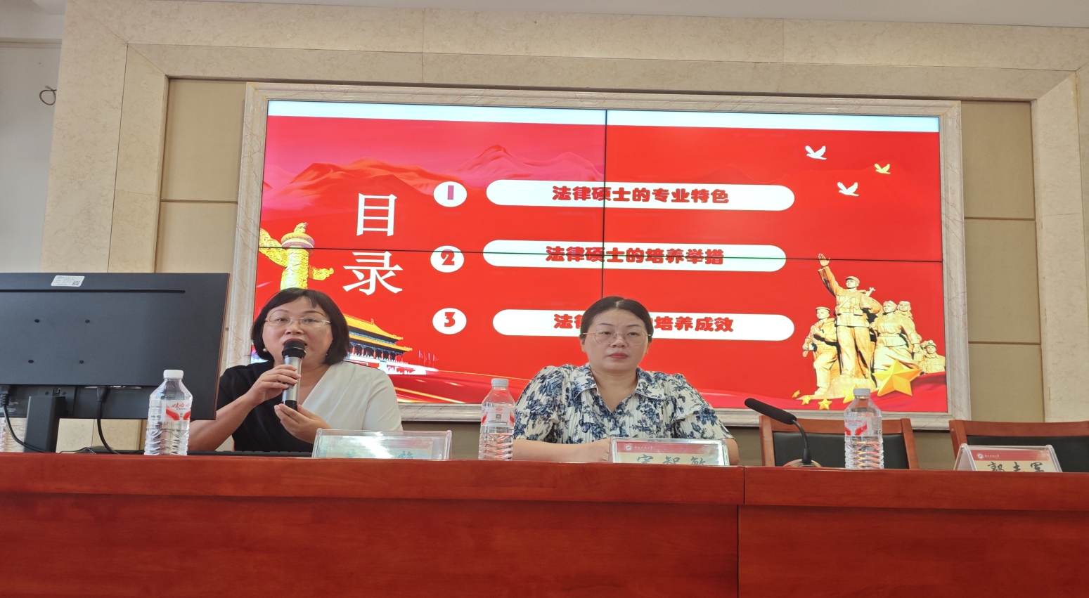 法律硕士学位点负责人朱红梅对该学位点专业特色、培养举措、以及培养成效等进行了详细介绍。