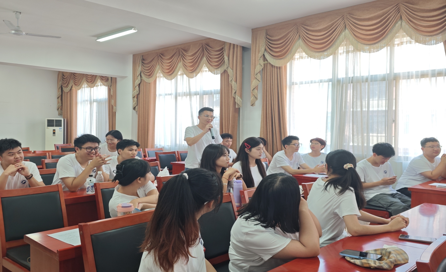 在新生自我介绍环节,同学们踊跃发言,展现了良好的精神风貌,同学之间得以进一步了解,迅速建立友谊。