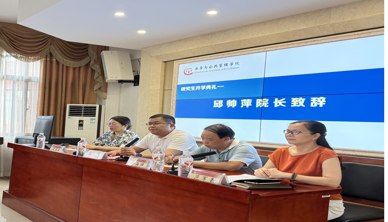 在范军豪副书记主持下,开学典礼在庄严的国歌声中拉开帷幕。邱帅萍院长代表学院致辞,对2025级新生的到来表示热烈欢迎并提出四点期望:一是“深耕专业”,依托为大家提供的湖南省人大常委会立法研究基地、湖南省检察案例研究基地等多个平台,产出具有影响力的学术成果;二是“以赛促学”,主动投身案例大赛、模拟法庭大赛、创新创业竞赛等,在竞技中磨砺真本领;三是“服务社会”,参与法律援助、社区治理、政策咨询,让“法治”与“善治”在脚下生根;四是“健康成长”,希望大家合理规划时间,协调学业、生活与兴趣。他勉励大家以“研究生”新身份扛起时代担当,在太阳集团城网址83138“学有所成、不负热爱、前程似锦”。