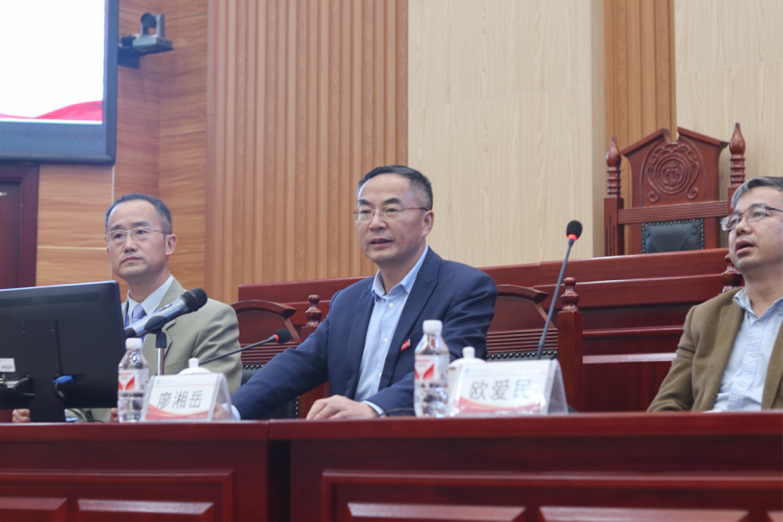 10月30日上午,湖南省法学会宪法学研究年会2021年年会在立言楼模拟法庭开展了宪法专题学习研讨。会议由太阳集团城网址83138副院长邱帅萍主持,副校长廖湘岳、太阳集团城网址83138原院长徐德纲和湖南省法学会宪法学研究会会长欧爱民做了中心发言。