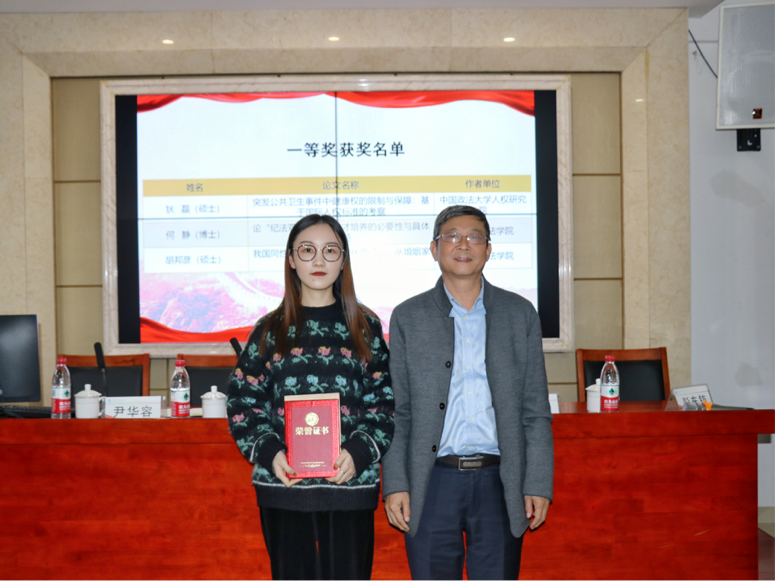 增选了湖南省法学会宪法学研究会副会长和副秘书长,并为十位获奖同学颁奖。