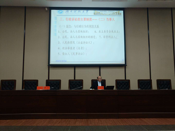 2018年4月28日上午,太阳集团城网址83138李云霖教授在湘潭市人大常委会进行了题为“法治政府建设中的行政诉讼制度”讲座。讲座由湘潭市人大常委会韩晓秘书长主持,湘潭市人大常委会杨建业副主任、潘爱民副主任、阳建民副主任、湘潭市人大各位专门委员会主任与副主任,以及市人大常委会机关的其他工作人员到场参加。 李云霖教授从行政诉讼制度与十八大以来法治政府的决断、行政诉讼制度的主要法律和司法解释、法治政府建设中的行政诉讼主要制度三方面进行了深入阐释。围绕法治政府建设,萃取了十八大以来历次重要大会中关于法治政府的关键内容,及其与行政诉讼制度的联系进行分析。关于行政诉讼制度的法律渊源,介绍了行政诉讼制度的主要法律和司法解释的最新进展,及其对法治政府建设的实效影响。受案范围、当事人、跨区域管辖、立案登记、起诉期限等行政诉讼的具体制度,则在一个个生动的案例中得到通俗的表述和深刻的解释。 湘潭市人大常委会高素质工作人员及其崇法和学法精神,为讲座营造了生动活泼的氛围。最后,韩晓秘书长进行了精彩点评,整场讲座在热烈的掌声中圆满完成。 (责任编辑:admin) |