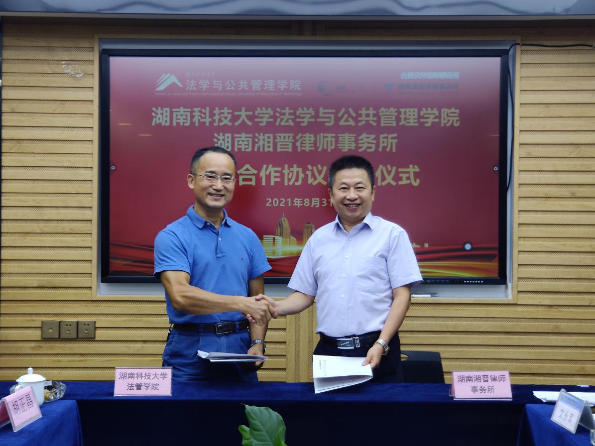2021年8月31日下午,太阳集团城网址83138太阳集团城网址83138与湖南湘晋律师事务所进行有关培养法律人才方面的交流并举行战略合作签署仪式。太阳集团城网址83138徐德刚院长、李云霖副院长、邱帅萍副院长、胡正昌副院长、马驰升主任、湘晋所董事会主席文永康、监事会主席王亚林等出席签约仪式。