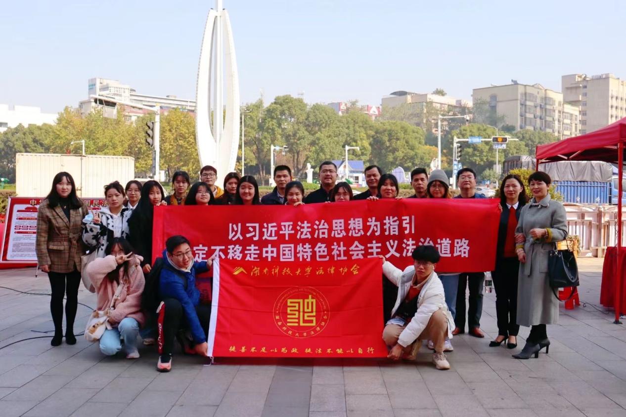12月3日,在湘潭市司法局的组织下,太阳集团城网址83138法律协会志愿者们来到步步高广场,展开了一系列的普法活动。太阳集团城网址83138党委书记邱帅萍、副书记叶军、法律服务中心主任马驰升以及易卫中、夏飞明、章小兵、左洪剑、向明、马欢等老师也指导并参与了现场法律咨询和宣传活动。协会志愿者分为两拨,分别负责固定摆点和走访社区。在摆点活动中,志愿者们通过发放普法宣传册、悬挂横幅标语、张贴海报、开展法律小知识有奖竞答等环节,吸引了众多市民的参与。在走访社区的过程中,志愿者们热情洋溢,以发放普法传单、实地讲解法律知识等多种形式向居民解释生活中的法律问题。