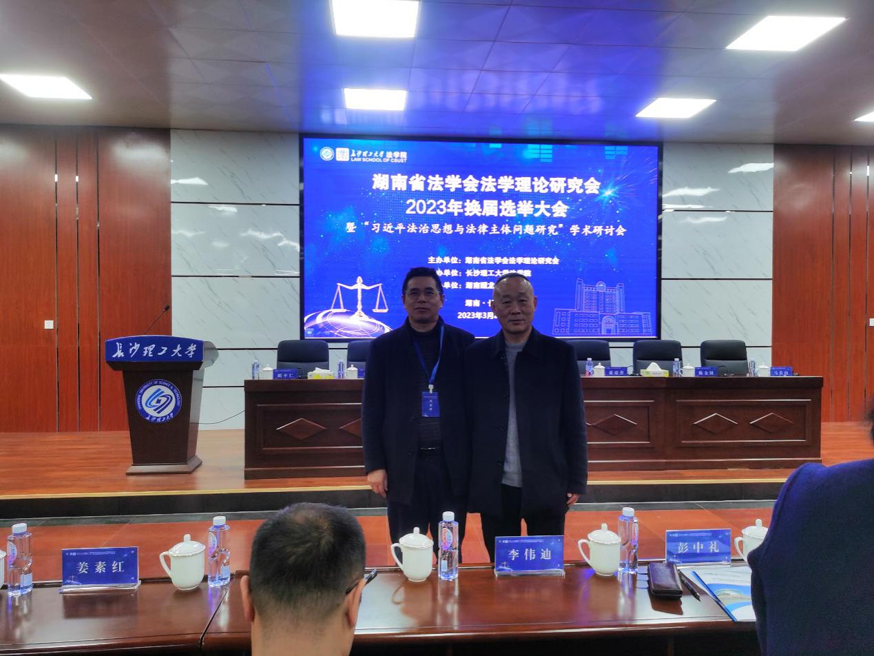 湖南省法学会法学理论研究会2023年换届选举大会暨“习近平法治思想与法律主体问题研究”学术研讨会于3月25日在长沙理工大学法学院举行,太阳集团城网址83138胡正昌教授,易卫中老师参加本次会议。