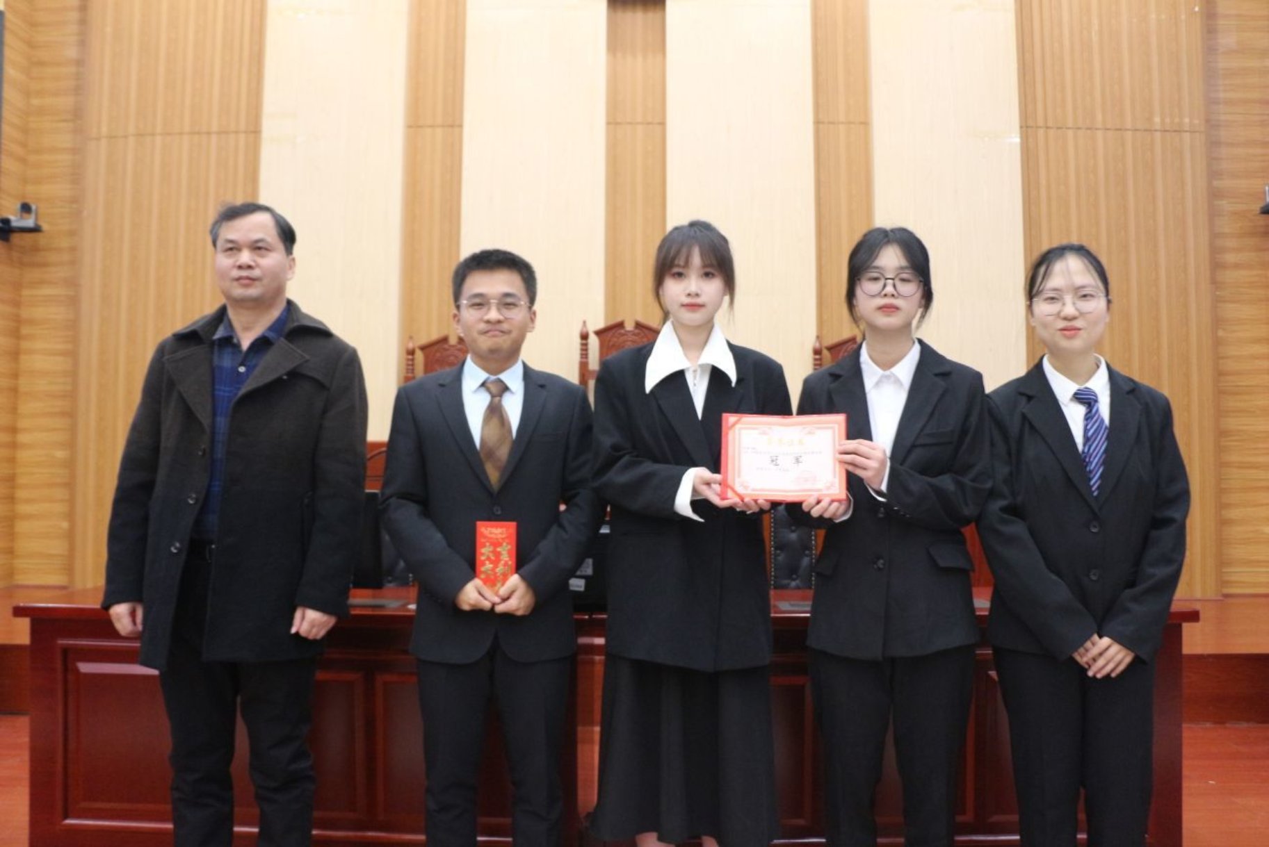最后,“尘埃落定”。由主持人宣布正方以6:3的比分获得最终胜利,最佳辩手为正方四辩的喻燕与反方三辩的符咏兰。叶军副书记、徐德刚教授分别为冠亚军颁奖合照。由此,伴随着全场的热烈掌声,在观众的欣赏目光、老师的满心期盼、与会人员的斗志昂扬中,本次新生辩论赛决赛圆满结束。