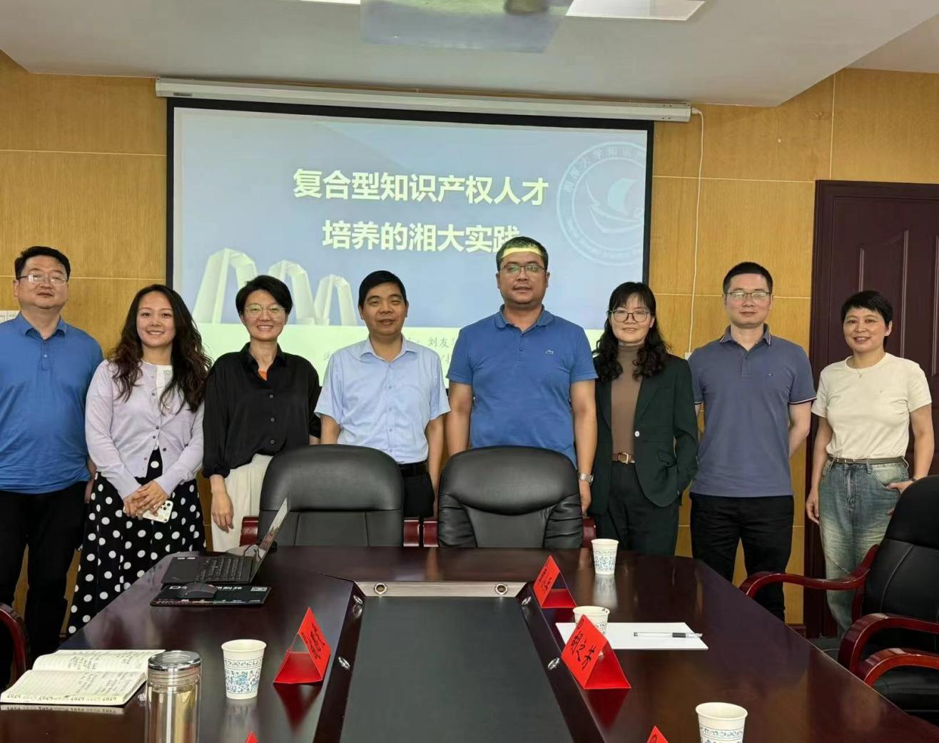 2024年5月30日上午,邱帅萍院长一行5人赴湘潭大学调研交流高校科技成果转化、科技法学方向科研工作、知识产权专业设置和人才培养等事宜,湘潭大学技术转移中心主任、知识产权学院教授刘友华等接待和出席调研交流活动。