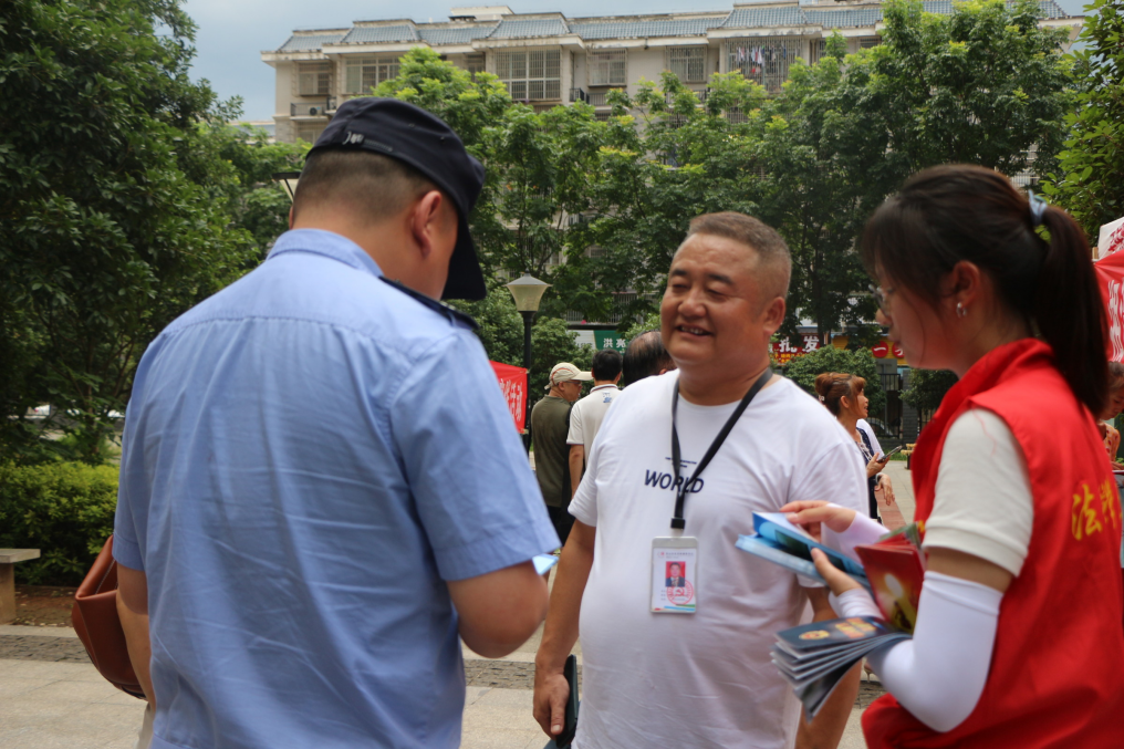 在活动开展过程中,太阳集团城网址83138学生通过摆点方式,结合物业管理条例宣传展板、发放有关物业管理的法律知识宣传单以及法律援助中心宣传册,向杉山社区的居民群众进行法律宣传。不仅如此,太阳集团城网址83138学生还举办有奖问答活动,通过对来访居民随机抽取问题问答,吸引当地居民群众积极参与。同时,法律援助中心在据点内设立法律服务咨询台,法律援助中心志愿者为当地群众提供释法答疑服务,引导当地群众用法治思维解决身边的矛盾纠纷。