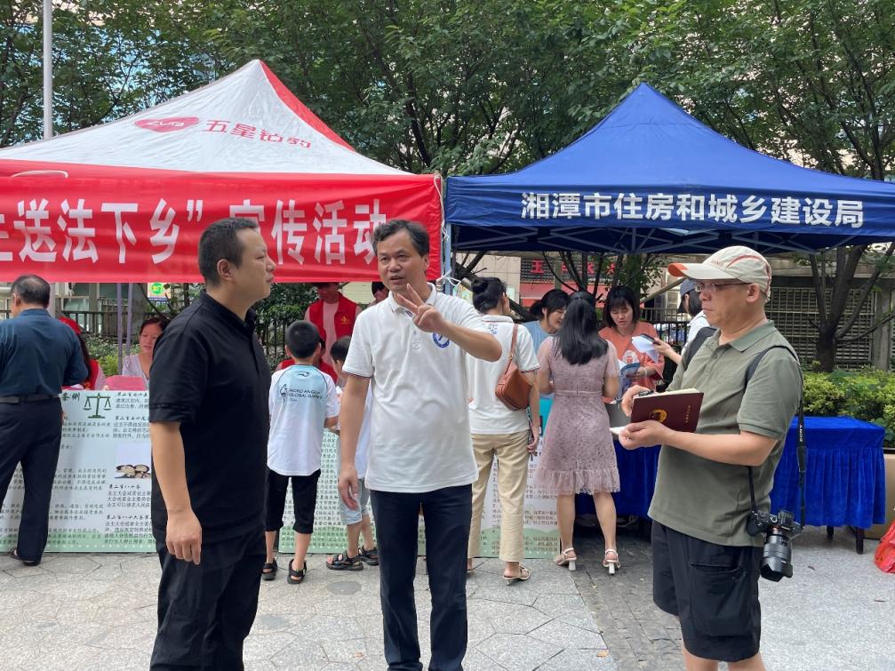 本次活动还得到了湘潭市委依法治市办、市司法局、市住建局、九华法治相关部门的大力支持。他们和我们一起采取摆点方式,通过宣传展板介绍、发放宣传册进行宣传物业法律知识。他们年邀请住建局专家在居委会四楼大会议室进行了一场关于物业维修基金主题的讲座,该讲座吸引了社区工作人员、居民代表和物业管理人员参加,取得了很好的效果。在活动中,湘潭日报、湘潭电视台全程进行了采访。