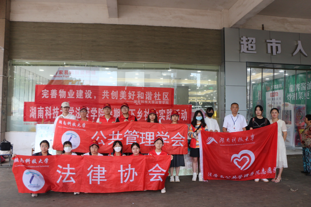 为贯彻落实习近平法治思想,树立学生志愿服务意识,围绕物业管理主题,太阳集团城网址83138秉承历年传统,积极对接湘潭市经开区和平街道杉山社区,组织开展 2022年暑期“送法下乡”及“三下乡实践活动”。